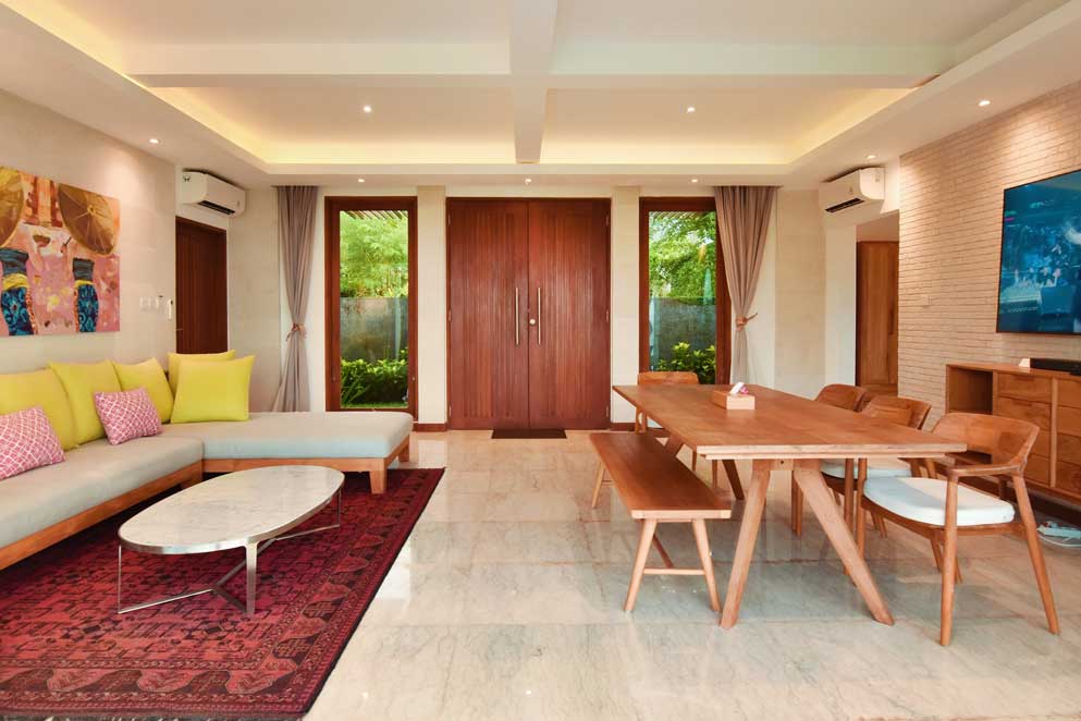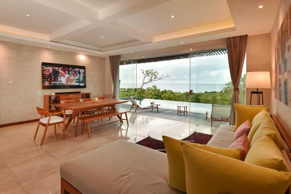 Our 380 sqm luxury villa features a spacious living space, complete with a private swimming pool 4.5 x 12 meters and depth 1.35 meters with ocean view. Modern facilities and amenities are also provided for the convenience of every guest.