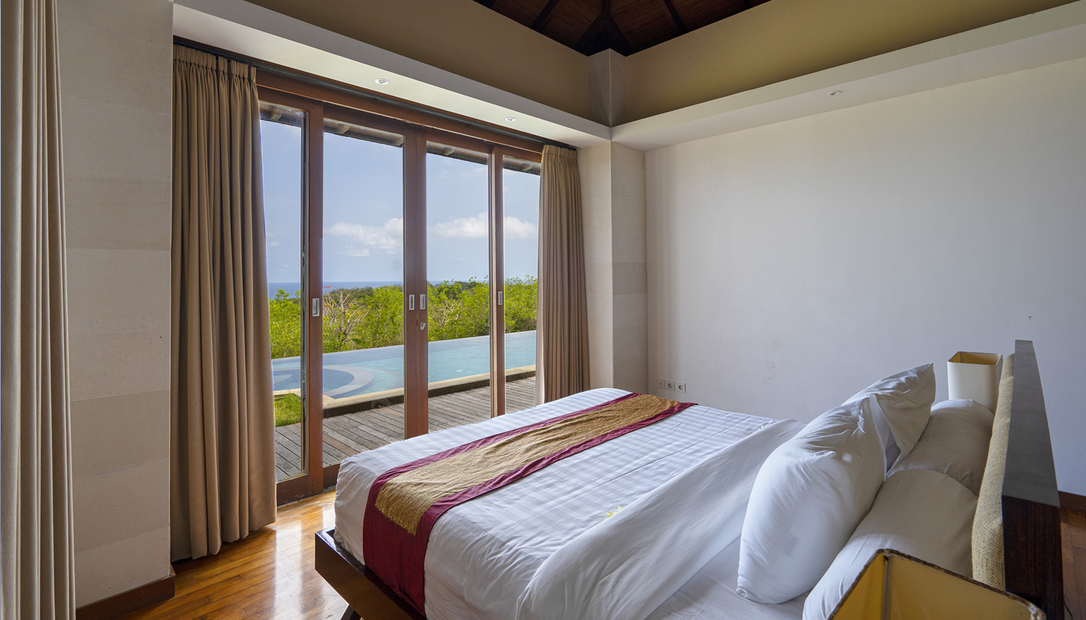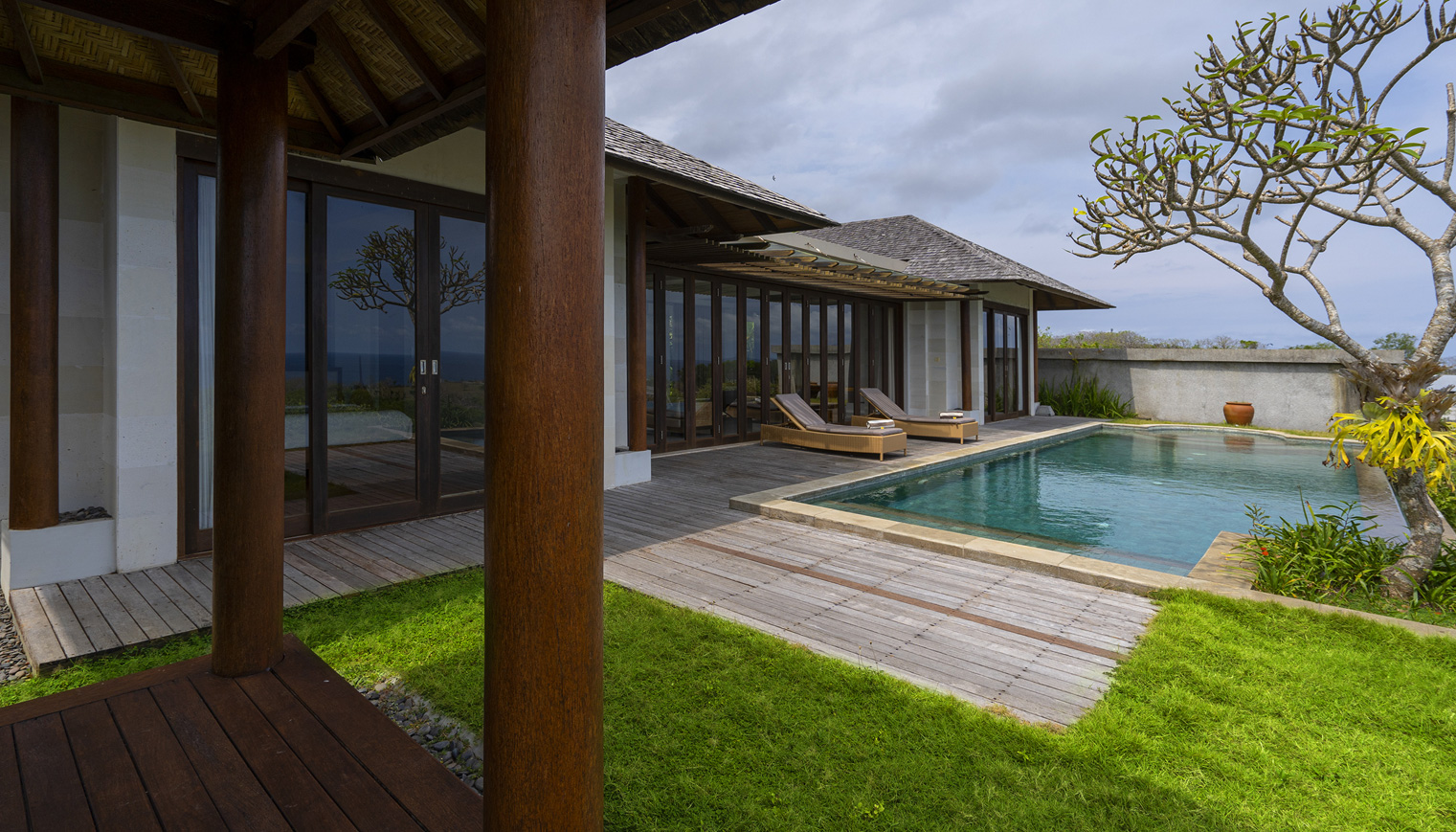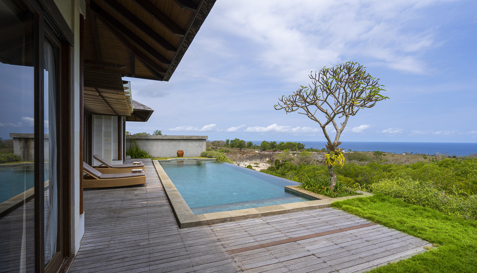 Our 448 sqm luxury villa features a spacious living space, complete with a private swimming pool 4.5 x 12 meters and depth 1.35 meters with ocean view. Modern facilities and amenities are also provided for the convenience of every guest.