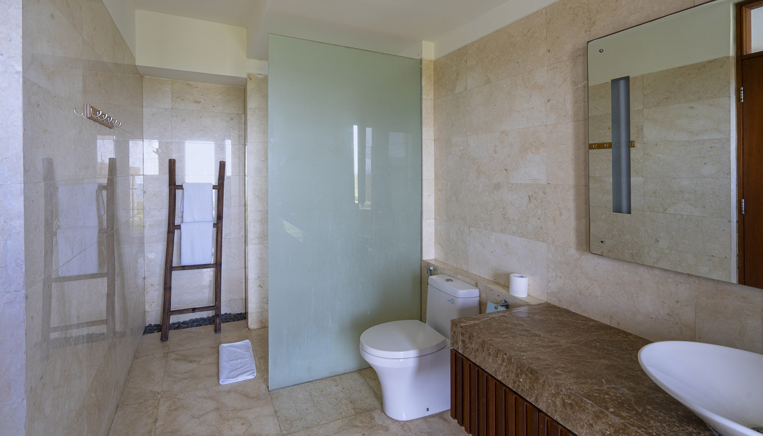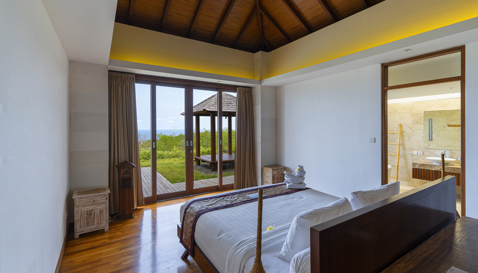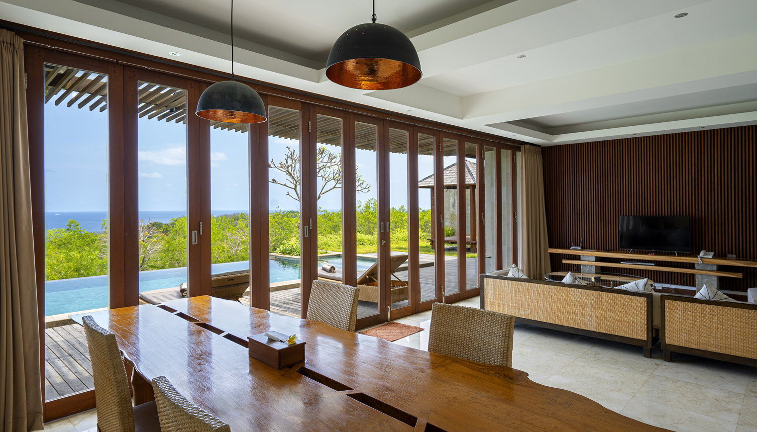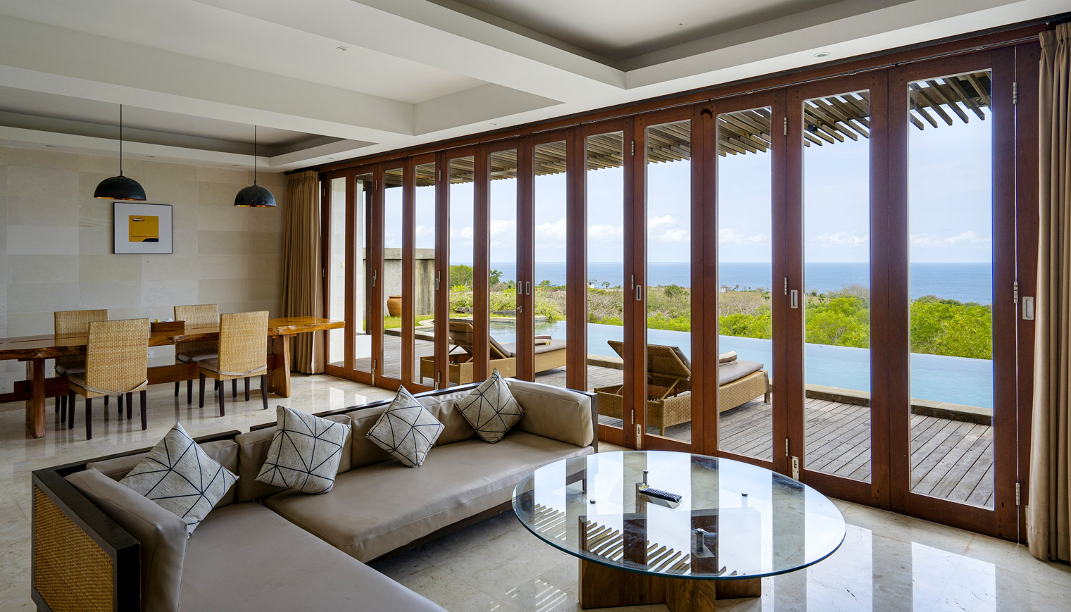 Our 448 sqm luxury villa features a spacious living space, complete with a private swimming pool 4.5 x 12 meters and depth 1.35 meters with ocean view. Modern facilities and amenities are also provided for the convenience of every guest.