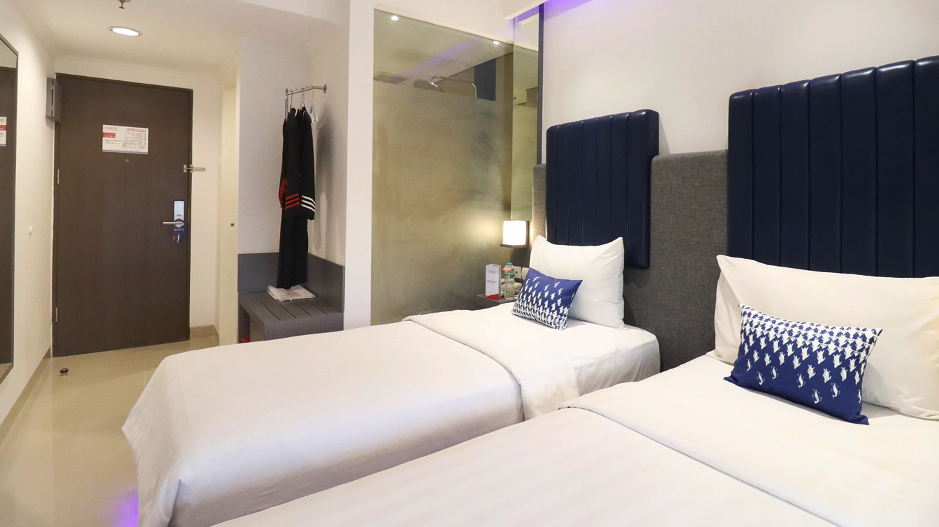 A luxury-modern compact balanced with the smart hybrid hotel concept. This room offers 16.5 sqm with two beds and is located in the 3rd to 6th Floor. All rooms are supported with luxury-modern-smart facilities and amenities.