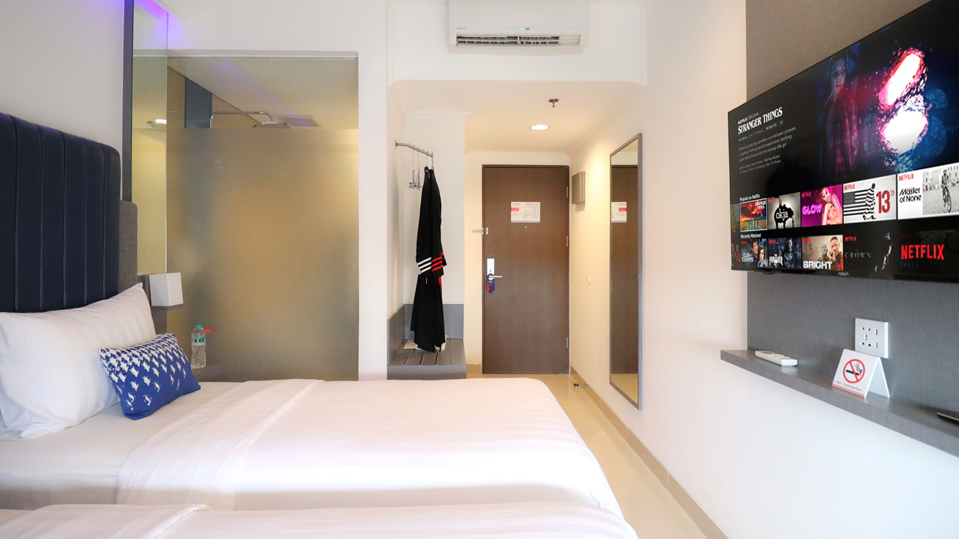 A luxury-modern compact balanced with the smart hybrid hotel concept. This room offers 16.5 sqm with spacious beds. All rooms are supported with luxury-modern-smart facilities and amenities also executive chair